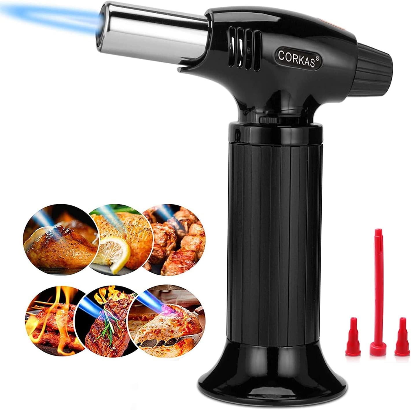 Butane Torch By Corkas Professional Culinary Blow Torch Lighter With Safety Lock Continuous Flame Mode And Max 1300 C 2500 F For Kitchen Cooking Bbq Creme Soldering Diy Gas Not Included Amazon Ca Tools
