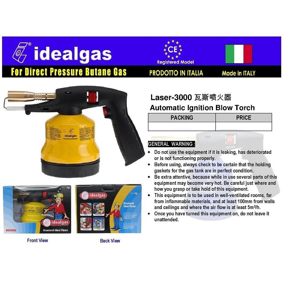 Jt Estore Idealgas Laser 3000 Blowtorch Ideal Flame Automatic Ignition Blow Torch Made In Italy Shopee Malaysia